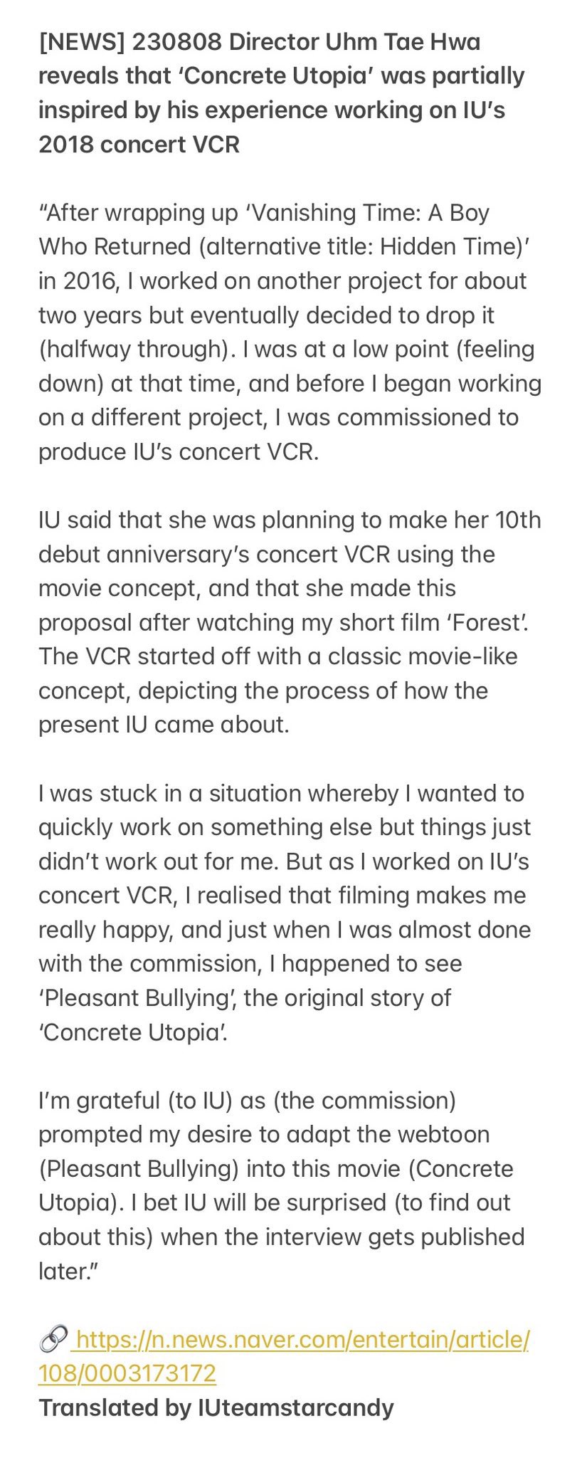 Words by IU on X: “Director Uhm Tae Hwa shared in an interview in